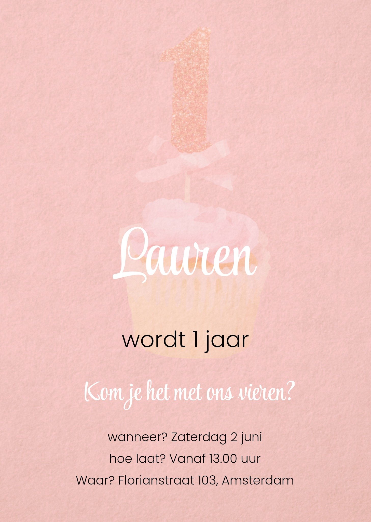De Greetz collectie is door Greetz designers samengesteld en ontworpen. Volgens de laatste trends, en voor iedere gelegenheid. Laat een eerste verjaardag niet onopgemerkt voorbij gaan! Nodig iedereen uit voor het kinderfeestje met deze hippe roze uitnodiging. Op de achtergrond staat een cupcake met een kaars in de vorm van een 1 afgedrukt. Tip: Leg de eerste verjaardag van jouw kindje vast met de leuke Milestone eerste verjaardag kaartjes. Greetz Kinderfeestje uitnodiging Meisje 1 Jaar Postcard