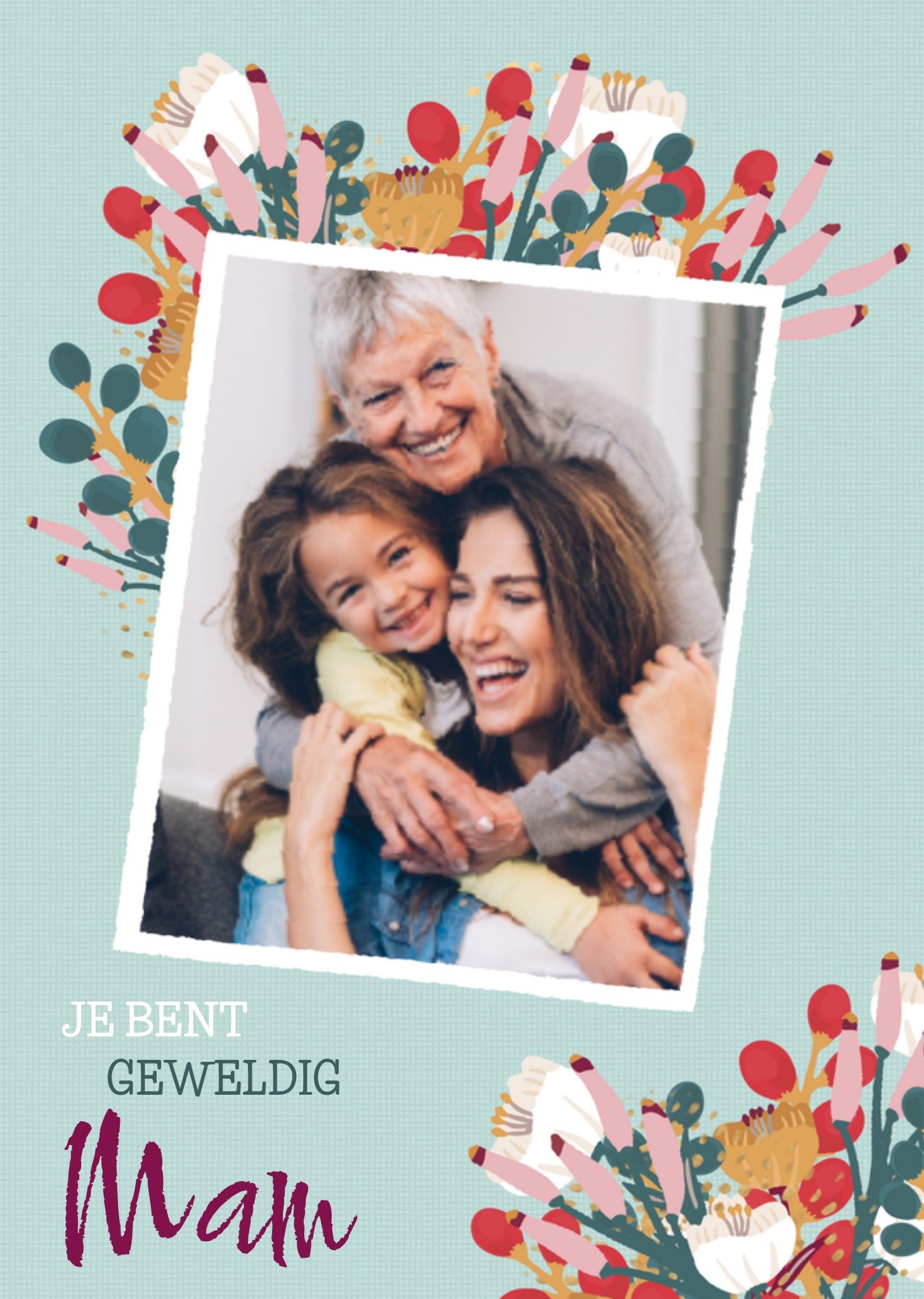 Stuur je moeder deze mooie kaart voor Moederdag met bloemen. Je kunt een foto toevoegen. Wenskaart van Greetz ontworpen door Greetz designers, volgens de laatste trends. Voeg je eigen foto('s), tekst, & versiering toe om de kaart extra persoonlijk te maken. Je kunt de kaart toevoegen aan je favorieten of tussentijds opslaan om deze later af te maken. Meer Moederdagkaarten zien? Check ze hier. Greetz Moederdagkaart foto bloemen Postcard
