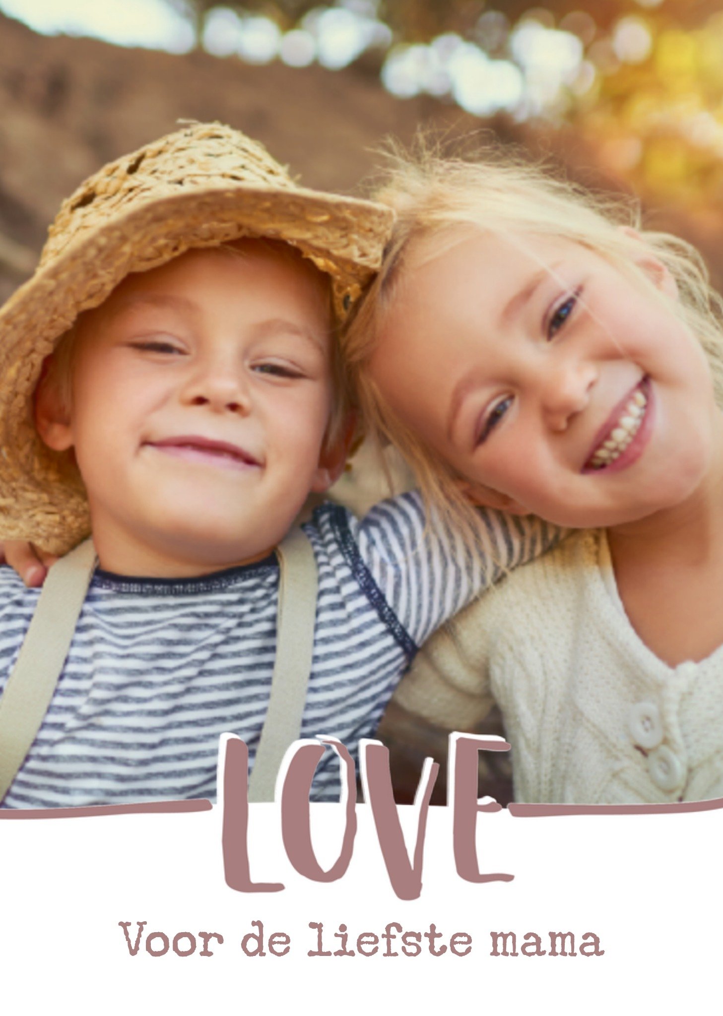 Een lieve moederdagkaart voor de liefste mama. Dit is een moederdagkaart met foto Wenskaart van Greetz ontworpen door Greetz designers, volgens de laatste trends. Voeg je eigen foto('s), tekst, & versiering toe om de kaart extra persoonlijk te maken. Je kunt de kaart toevoegen aan je favorieten of tussentijds opslaan om deze later af te maken. Meer Moederdagkaarten zien? Check ze hier. Greetz Moederdagkaart foto liefste mama Postcard