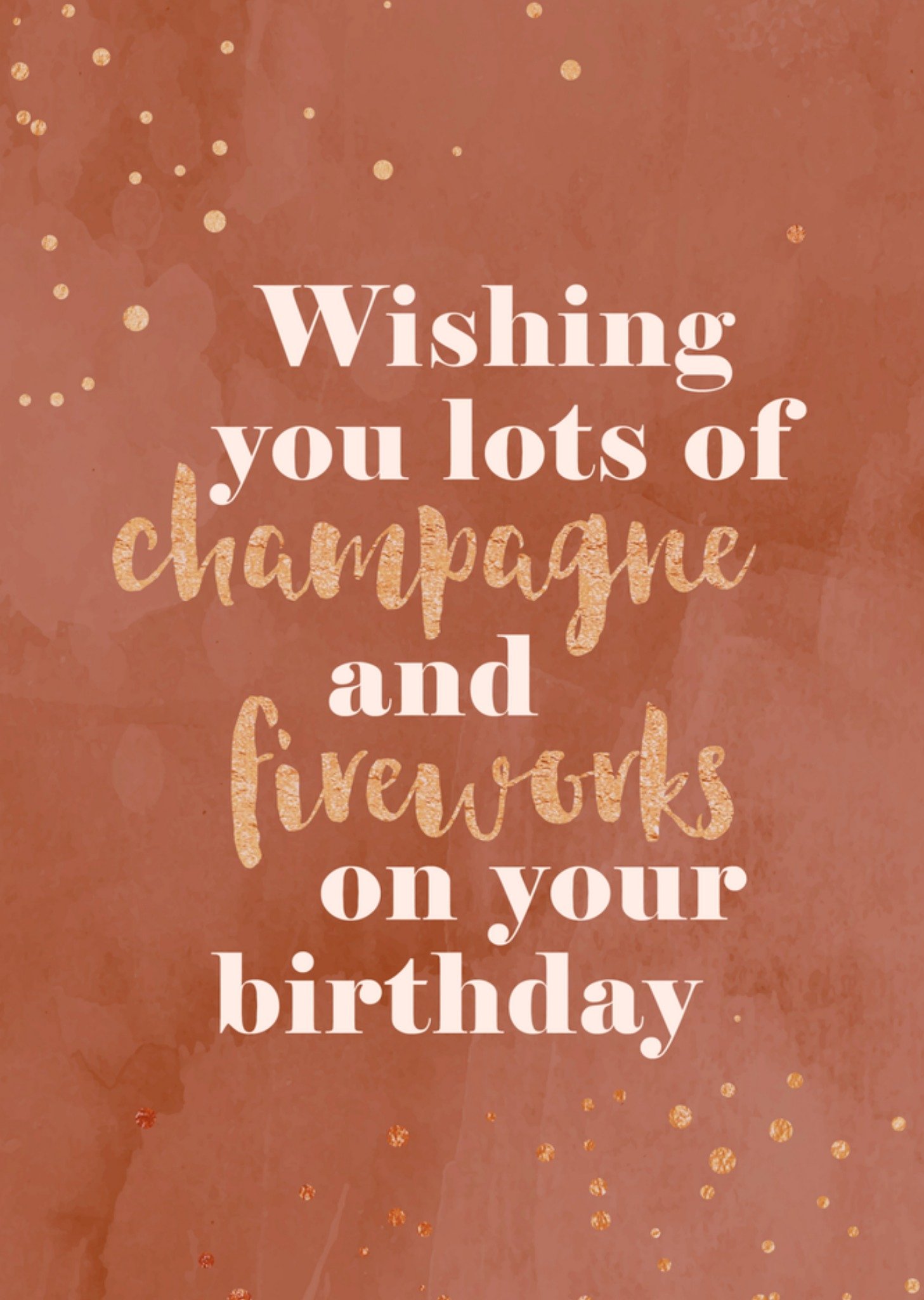 Op deze kerstkaart staat: Wishing you lots of champagne and fireworks on your birthday. Wenskaart van Greetz ontworpen door Greetz designers, volgens de laatste trends. Voeg je eigen foto('s), tekst, & versiering toe om de kaart extra persoonlijk te maken. Je kunt de kaart toevoegen aan je favorieten of tussentijds opslaan om deze later af te maken. Meer nieuwjaarskaarten zien? Check ze hier. Greetz Nieuwjaarskaart champagne verjaardag Postcard