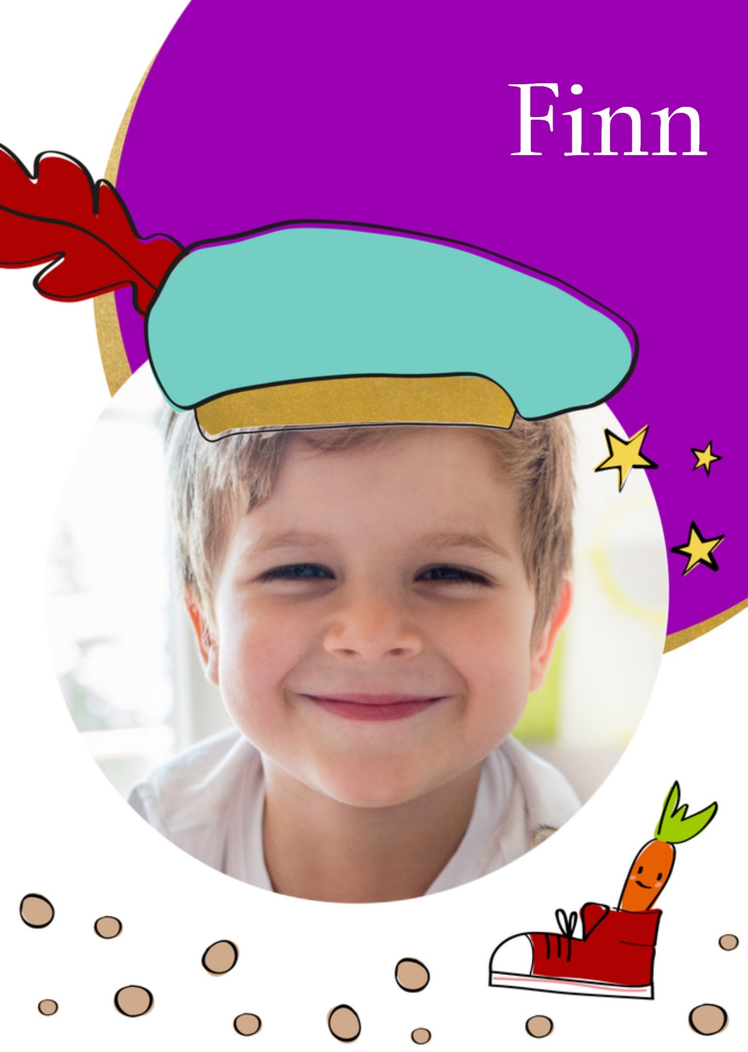 Vrolijke Sinterklaaskaart. Pas de naam aan en voeg een leuke foto toe en hij verandert in een pietje. Wenskaart van Greetz ontworpen door Greetz designers, volgens de laatste trends. Voeg je eigen foto('s), tekst, & versiering toe om de kaart extra persoonlijk te maken. Je kunt de kaart toevoegen aan je favorieten of tussentijds opslaan om deze later af te maken. Meer sinterklaas kaarten zien? Check ze hier. Greetz Sinterklaaskaart Met foto en naam Postcard