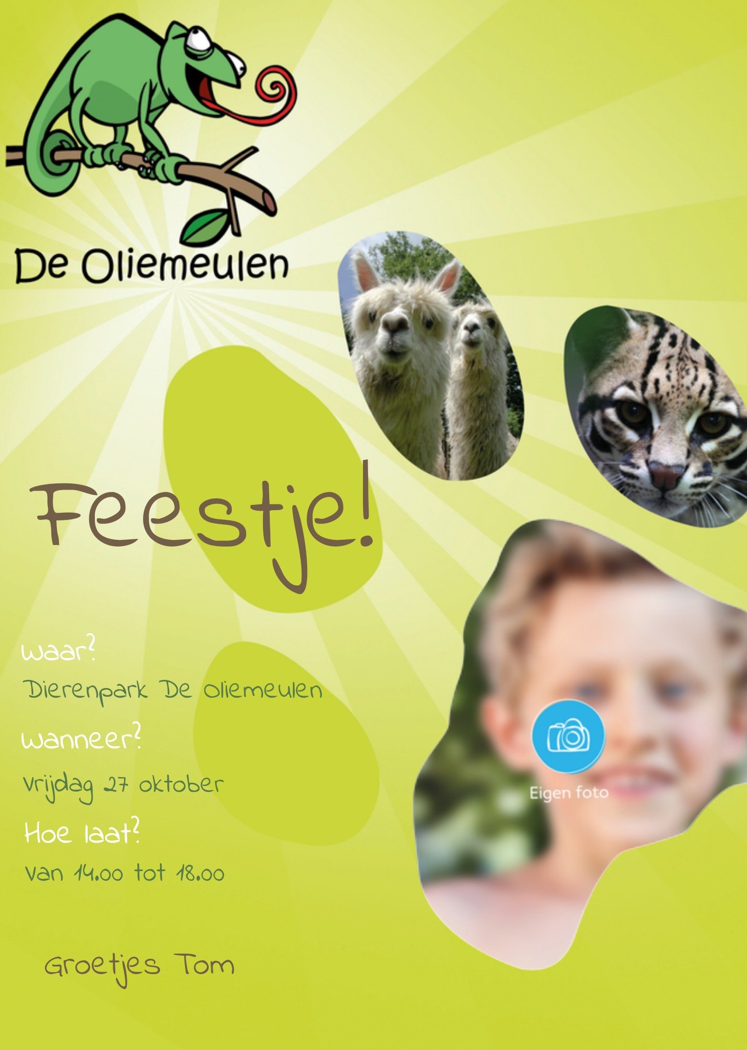 De Greetz collectie is door Greetz designers samengesteld en ontworpen. Volgens de laatste trends, en voor iedere gelegenheid. Er is een jarige! Nodig vrienden en familie uit met deze schattige uitnodiging. Op de voorkant staat een beertje met groene takjes. Pas ook de naam aan op het zalmroze lint. Tip: Leg de eerste verjaardag van jouw kindje vast met de leuke Milestone eerste verjaardag kaartjes. Greetz Uitnodiging Kinderfeestje Hip Beertje Postcard