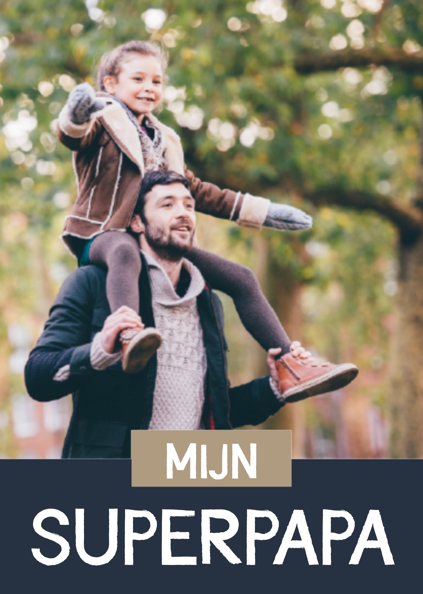 Op deze vaderdagkaart met foto staat: Mijn superpapa. Wenskaart van Greetz ontworpen door Greetz designers, volgens de laatste trends. Voeg je eigen foto('s), tekst, & versiering toe om de kaart extra persoonlijk te maken. Je kunt de kaart toevoegen aan je favorieten of tussentijds opslaan om deze later af te maken. Meer vaderdagkaarten zien? Check ze hier Greetz Vaderdagkaart foto superpapa Giant Card