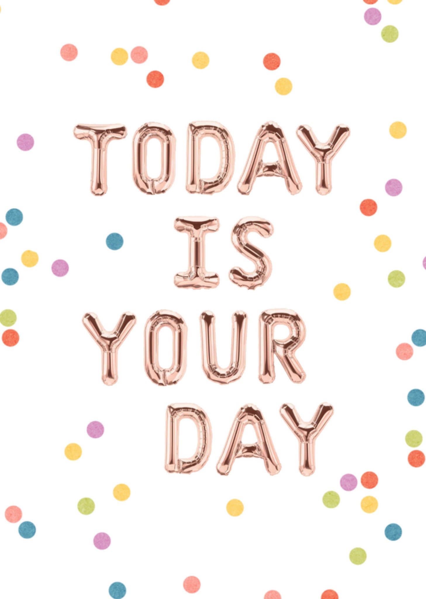 Wenskaart van Greetz ontworpen door Greetz designers, volgens de laatste trends. Voeg je eigen foto('s), tekst, & versiering toe om de kaart extra persoonlijk te maken. Je kunt de kaart toevoegen aan je favorieten of tussentijds opslaan om deze later af te maken. Toch liever een ander design? Bekijk dan onze andere verjaardagskaarten! Folie ballonnen zijn het helemaal! Stuur dus een hip kaartje met confetti en de tekst: 'today is your day' - geschreven met folie ballonnen. Greetz Verjaardagskaar