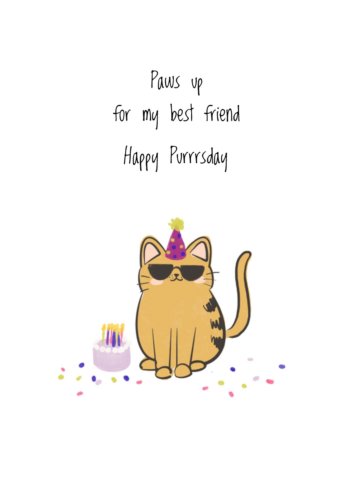 Wens je vriendin een fijne verjaardag toe met deze te grappige verjaardagskaart. Op de kaart zie je een coole kat met een feesthoed op en de tekst: Pawsup for my best friend. Happy birthday. Wenskaart van Greetz ontworpen door Greetz designers, volgens de laatste trends. Voeg je eigen foto('s), tekst, & versiering toe om de kaart extra persoonlijk te maken. Je kunt de kaart toevoegen aan je favorieten of tussentijds opslaan om deze later af te maken. Toch liever een ander design? Bekijk alle ver