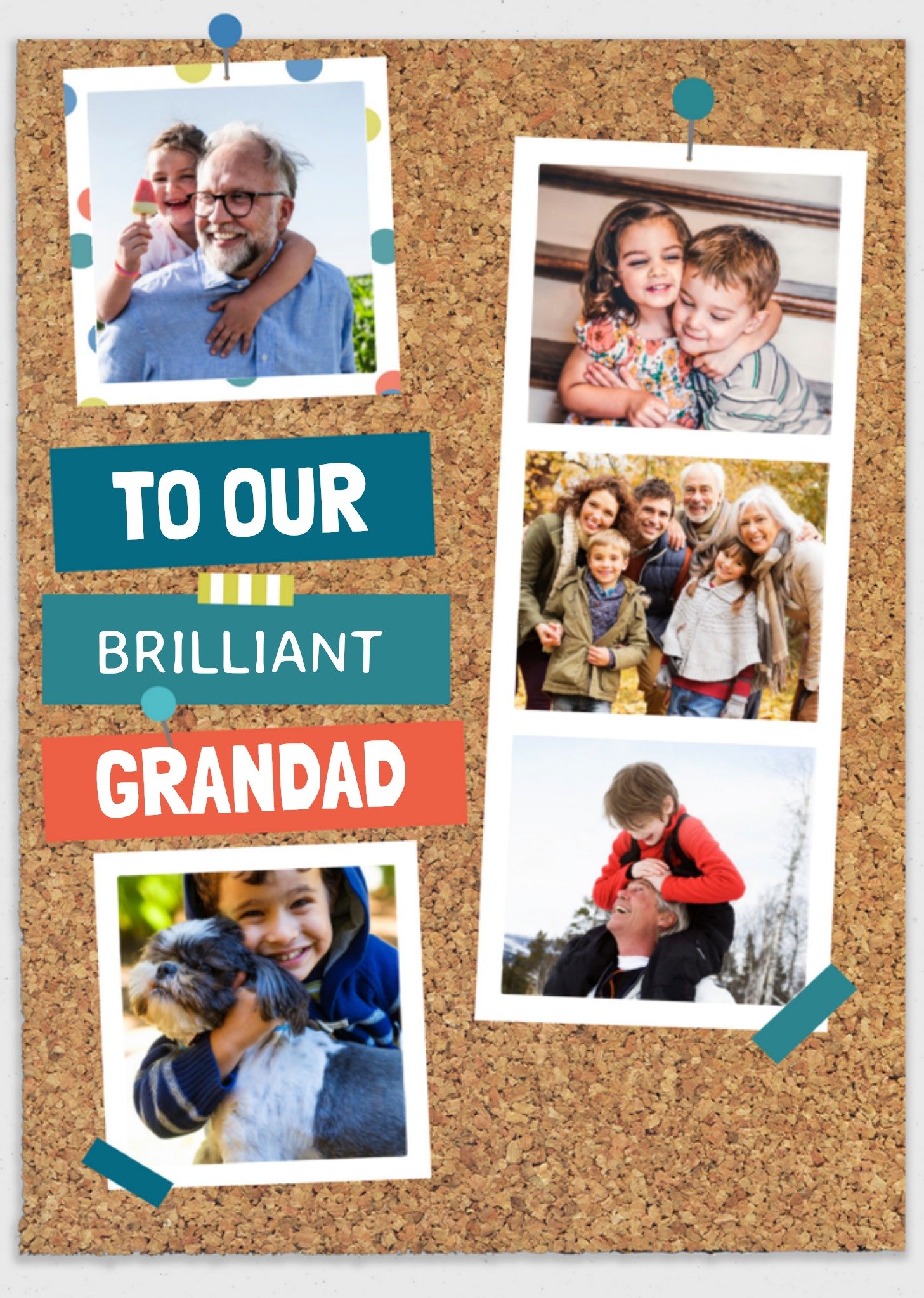 Leuke fotokaart voor een jarige opa. Op de kaart is plek voor meerdere foto's. Wenskaart van Greetz ontworpen door Greetz designers, volgens de laatste trends. Voeg je eigen foto('s), tekst, & versiering toe om de kaart extra persoonlijk te maken. Je kunt de kaart toevoegen aan je favorieten of tussentijds opslaan om deze later af te maken. Meer verjaardagskaarten zien? Check ze hier. Greetz Verjaardagskaart fotokaart voor opa Giant Card