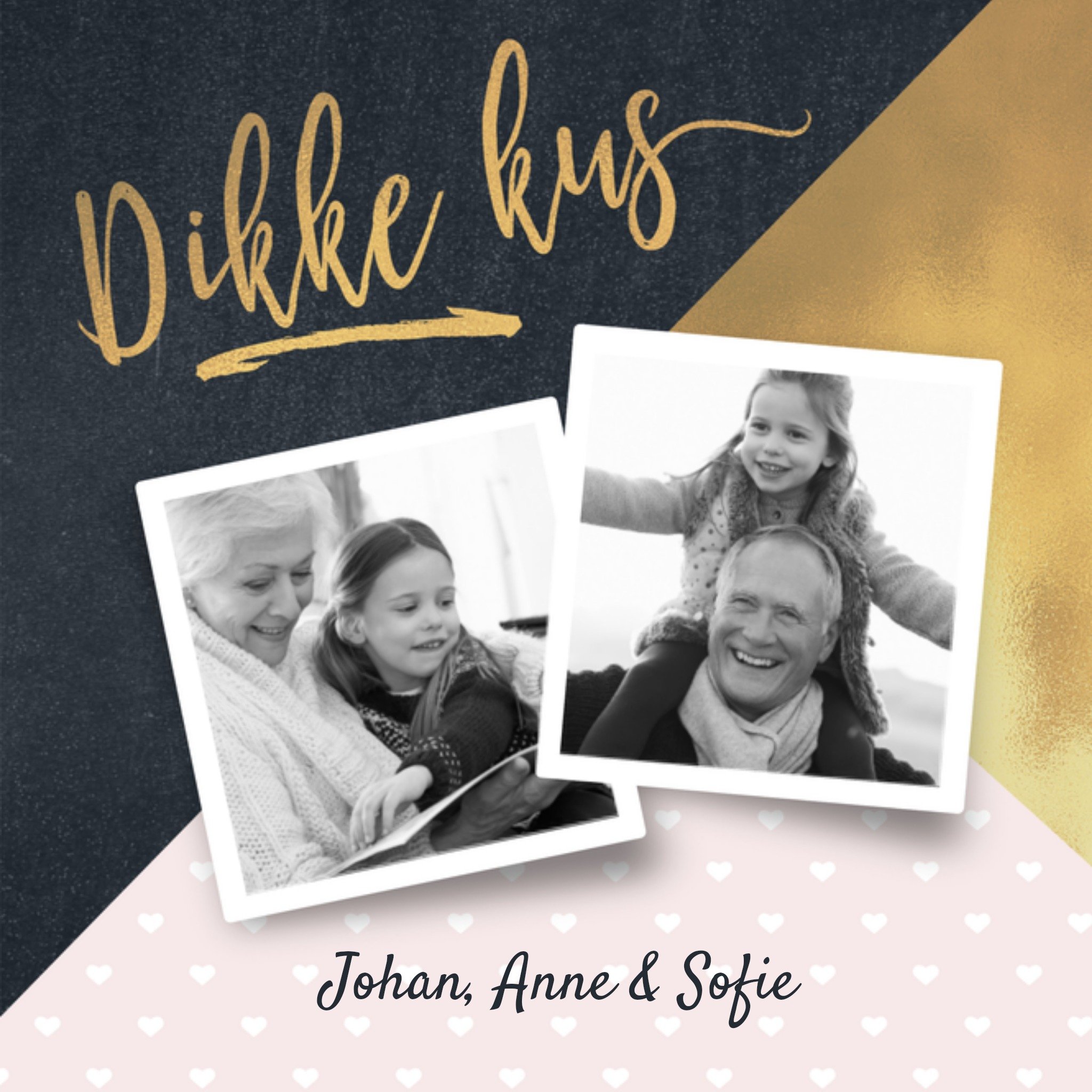 Leuke fotokaart met aanpasbare naam en de tekst: Dikke knuffel van ons Wat zijn ze hip hè, de kaartjes van Luckz! Ze zijn ontworpen door Erwin van Hesteren. Hij ontwerpt originele en unieke kaartjes voor ieder moment. De kaarten worden gekenmerkt door een frisse stijl: trendy, stijlvol en een beetje stoer. Vrolijke elementen als slingers, fotolijstjes en confetti worden gecombineerd met patronen en andere structuren, zoals hout. De kaartjes zijn gemakkelijk aan te passen, zodat jij je eigen perf