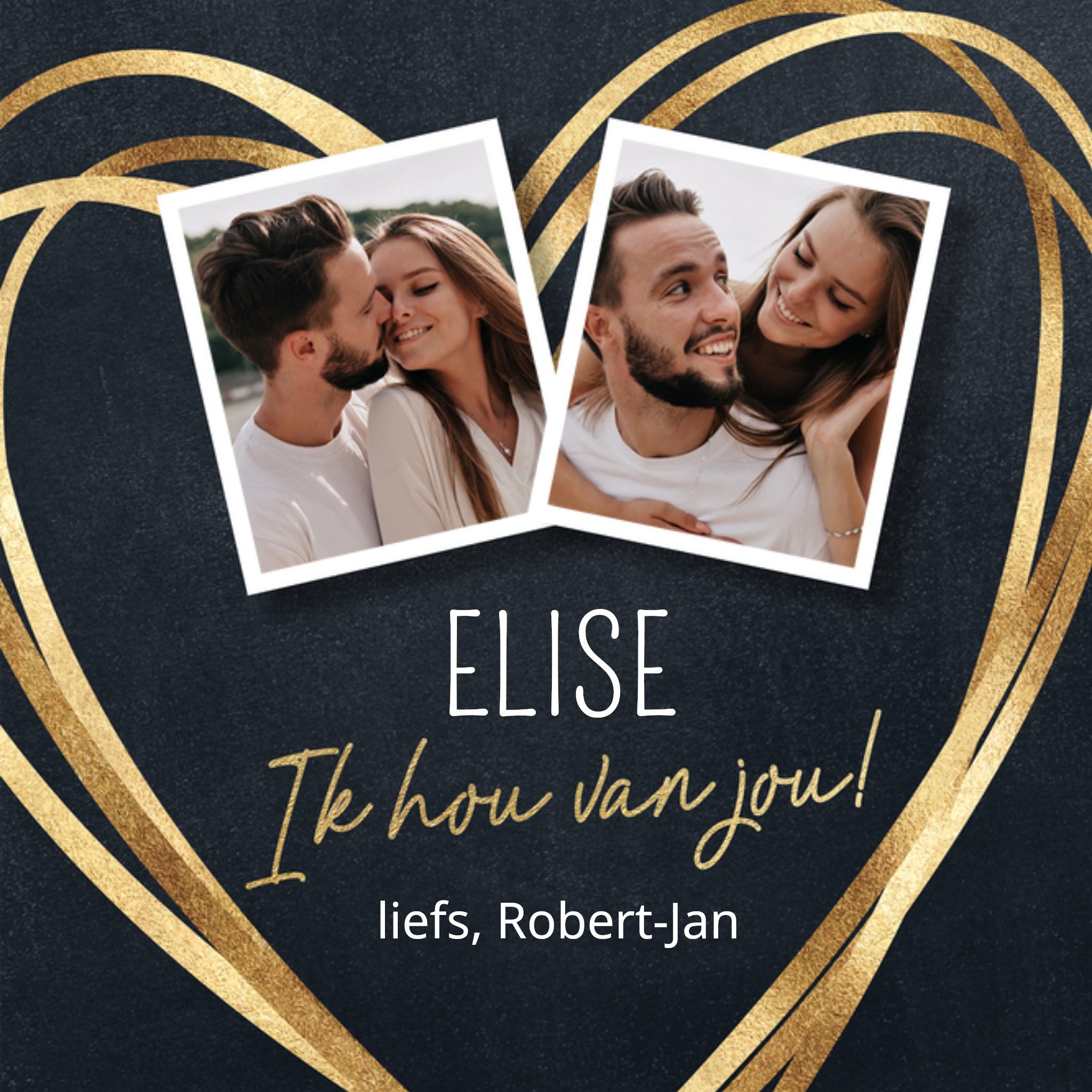 Leuke valentijnskaart van Luckz waar je een foto aan kunt toevoegen. Ook zie je de tekst: hugs & kisses en daaromheen allemaal zoentjes. Wat zijn ze hip hè, de kaartjes van Luckz! Ze zijn ontworpen door Erwin van Hesteren. Hij ontwerpt originele en unieke kaartjes voor ieder moment. De kaarten worden gekenmerkt door een frisse stijl: trendy, stijlvol en een beetje stoer. Vrolijke elementen als slingers, fotolijstjes en confetti worden gecombineerd met patronen en andere structuren, zoals hout. D
