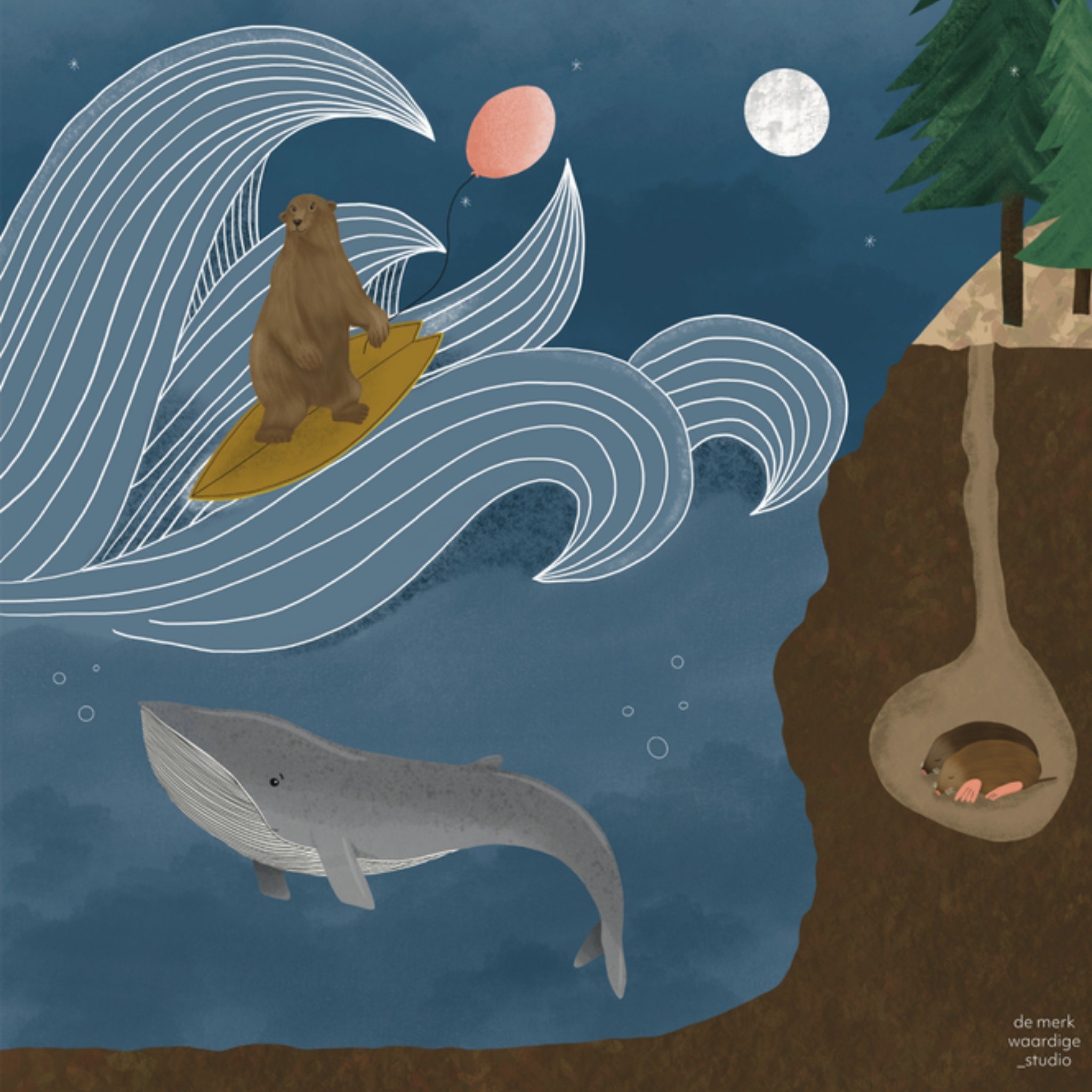 De Merkwaardige Studio Verjaardagskaart Surfen Dieren Giant Square Card
