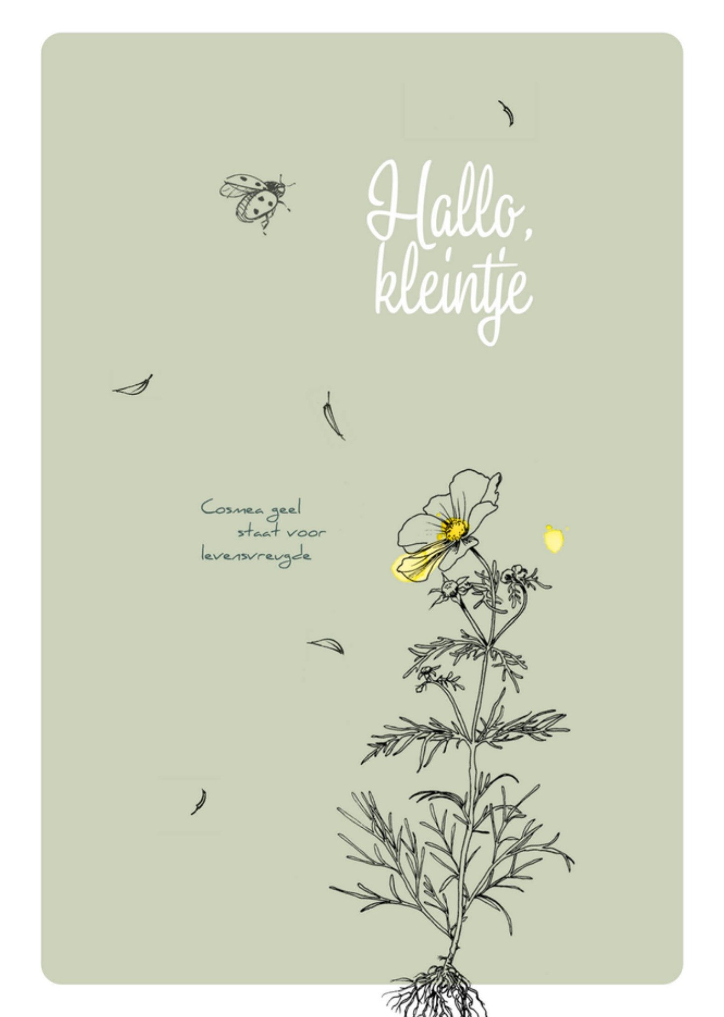 Veer & Moon Geboortekaart Cosmea geel voor levensvreugde Postcard