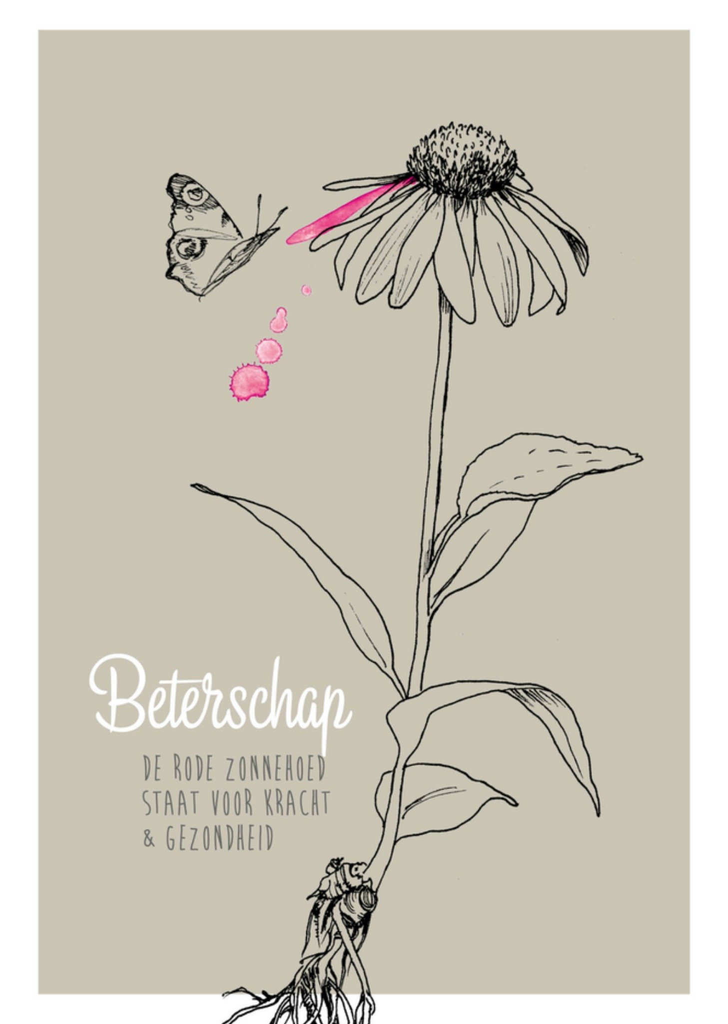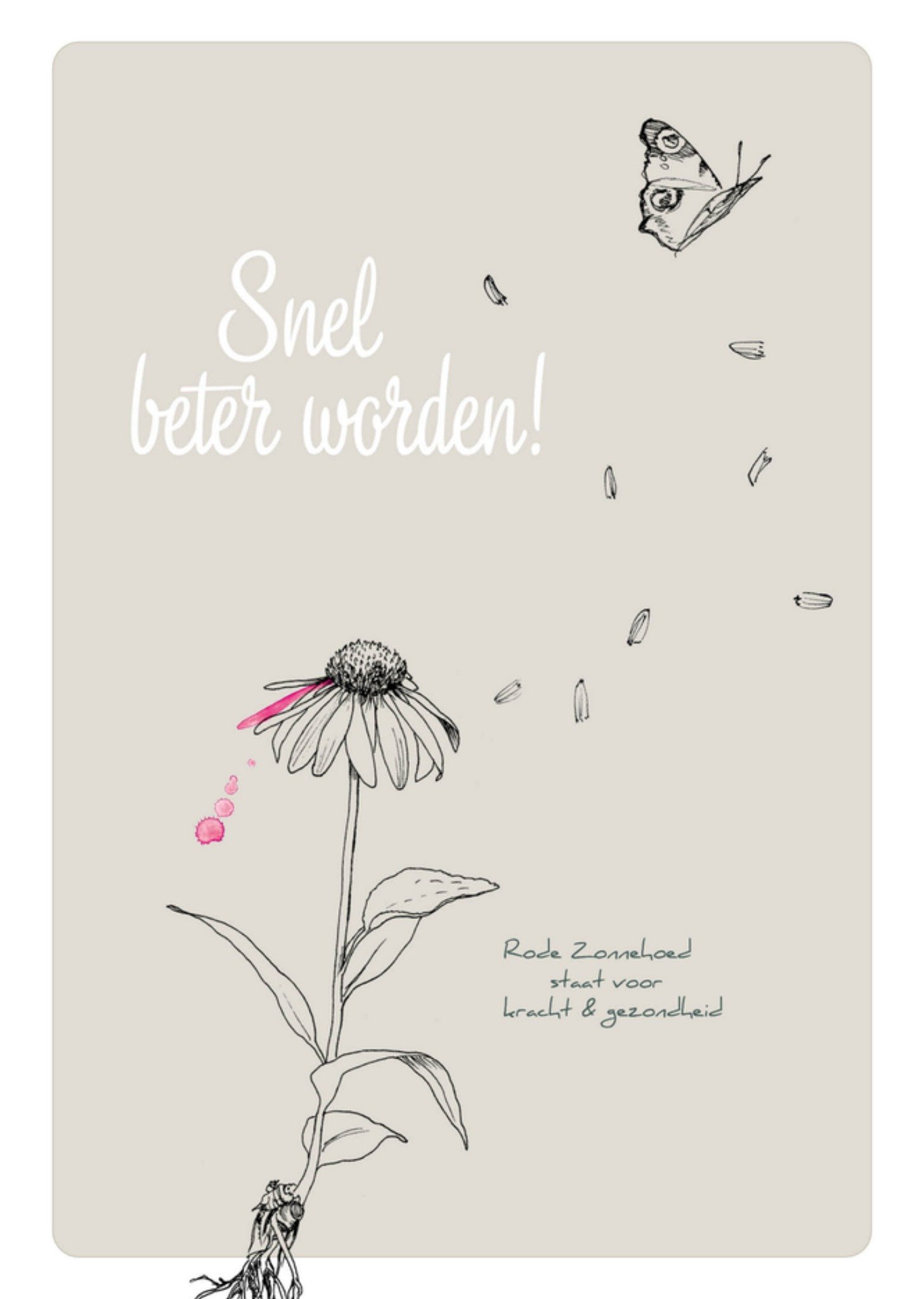Veer & Moon Beterschapskaart Illustratie bloem en vlinder Postcard