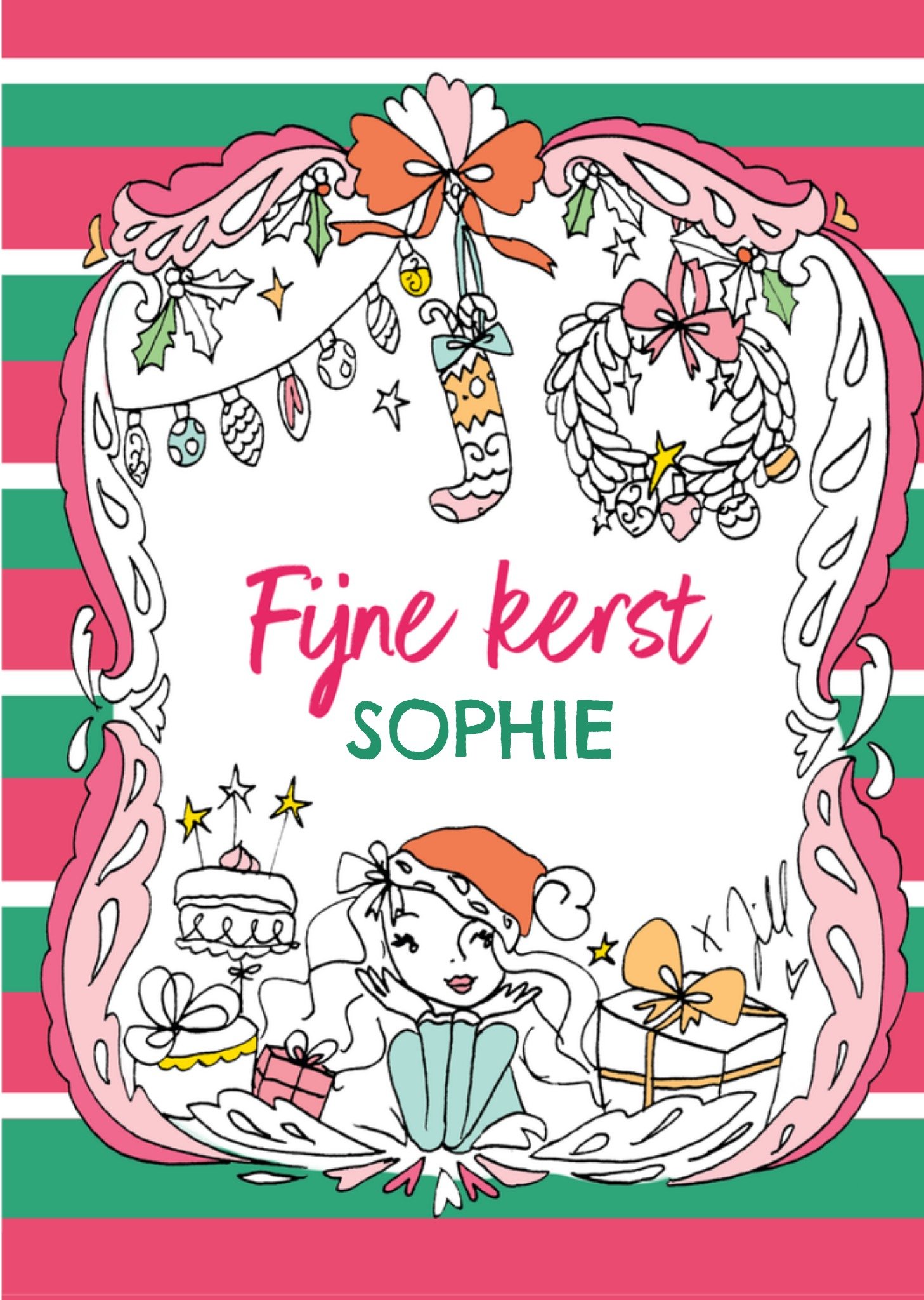Jill Kerstkaart Kleurplaat Met naam Giant Card