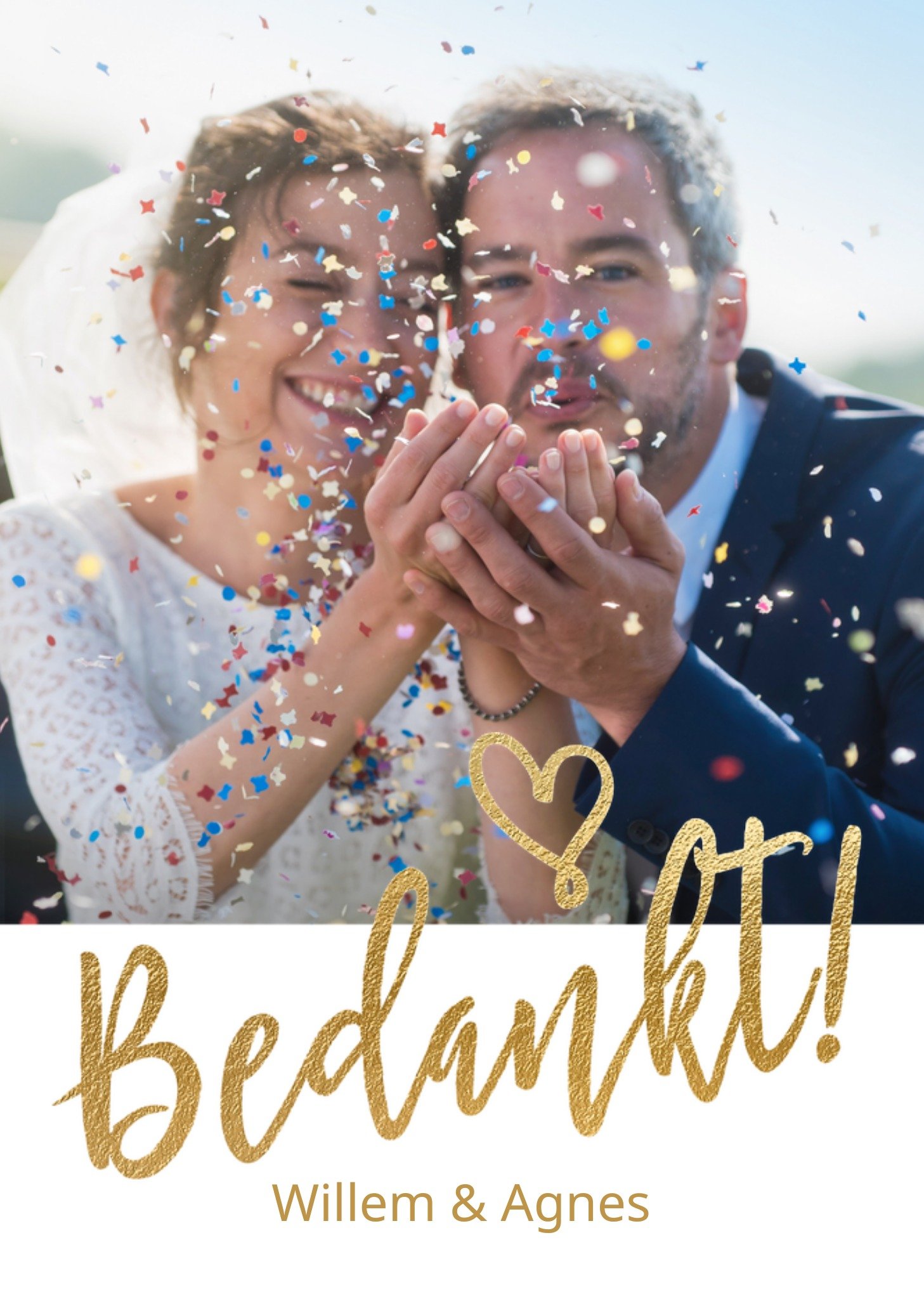 Luckz Bedankt kaartje Foto Goud Wit Hartje Giant Card