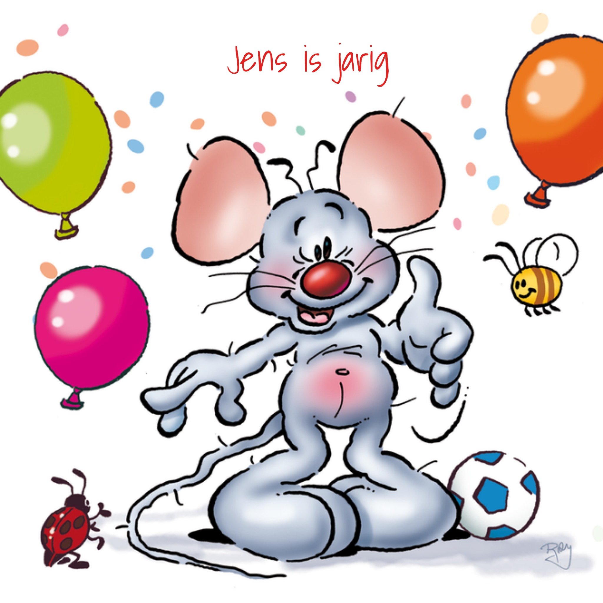 Doodles Verjaardagskaart muis met naam Square Card
