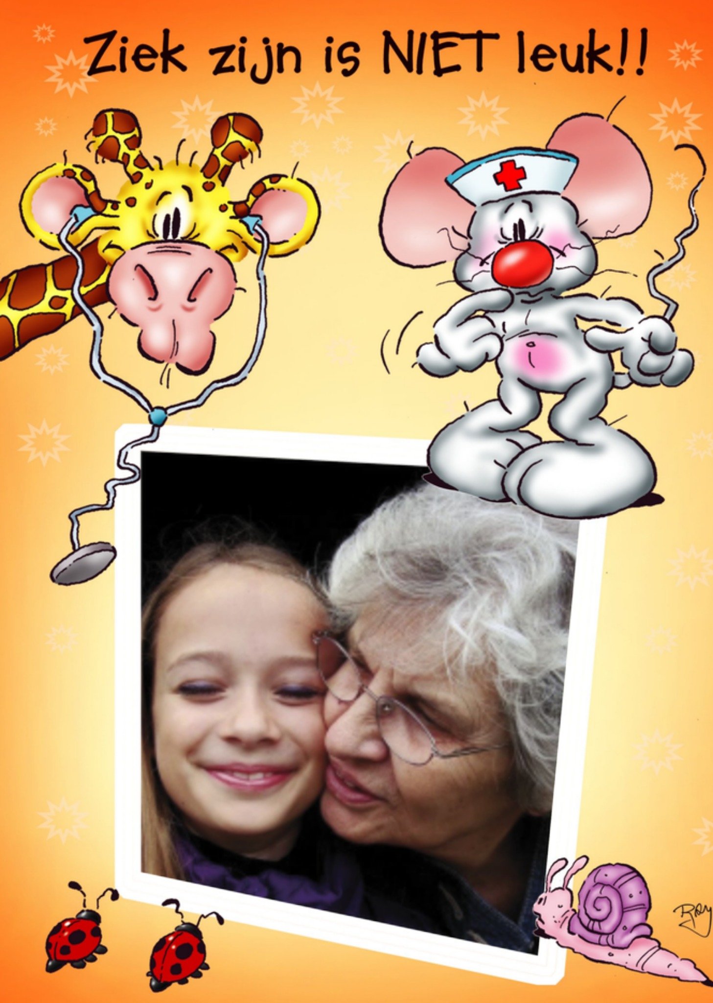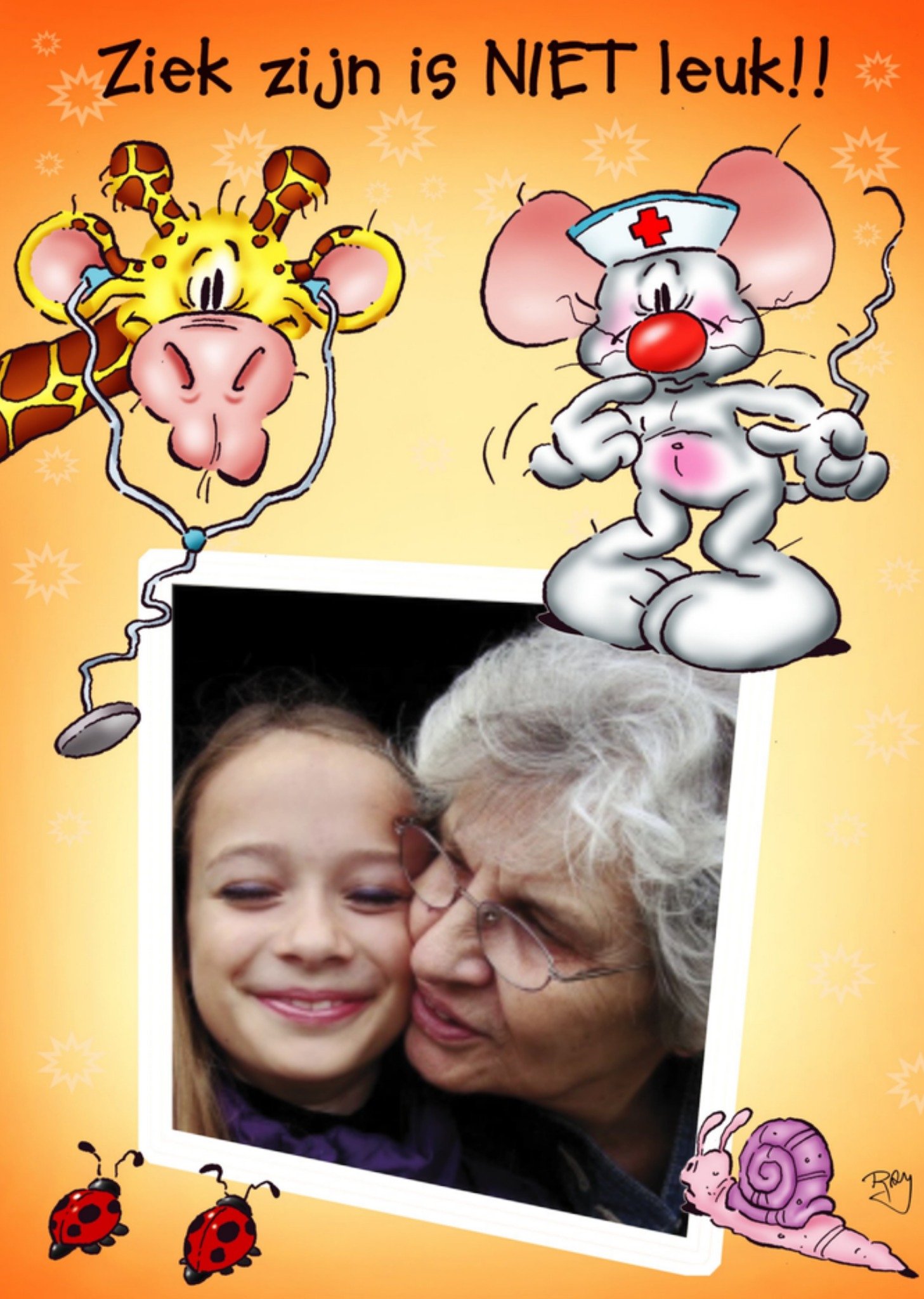 Doodles Beterschapskaart Ziek zijn is niet leuk + foto Giant Card