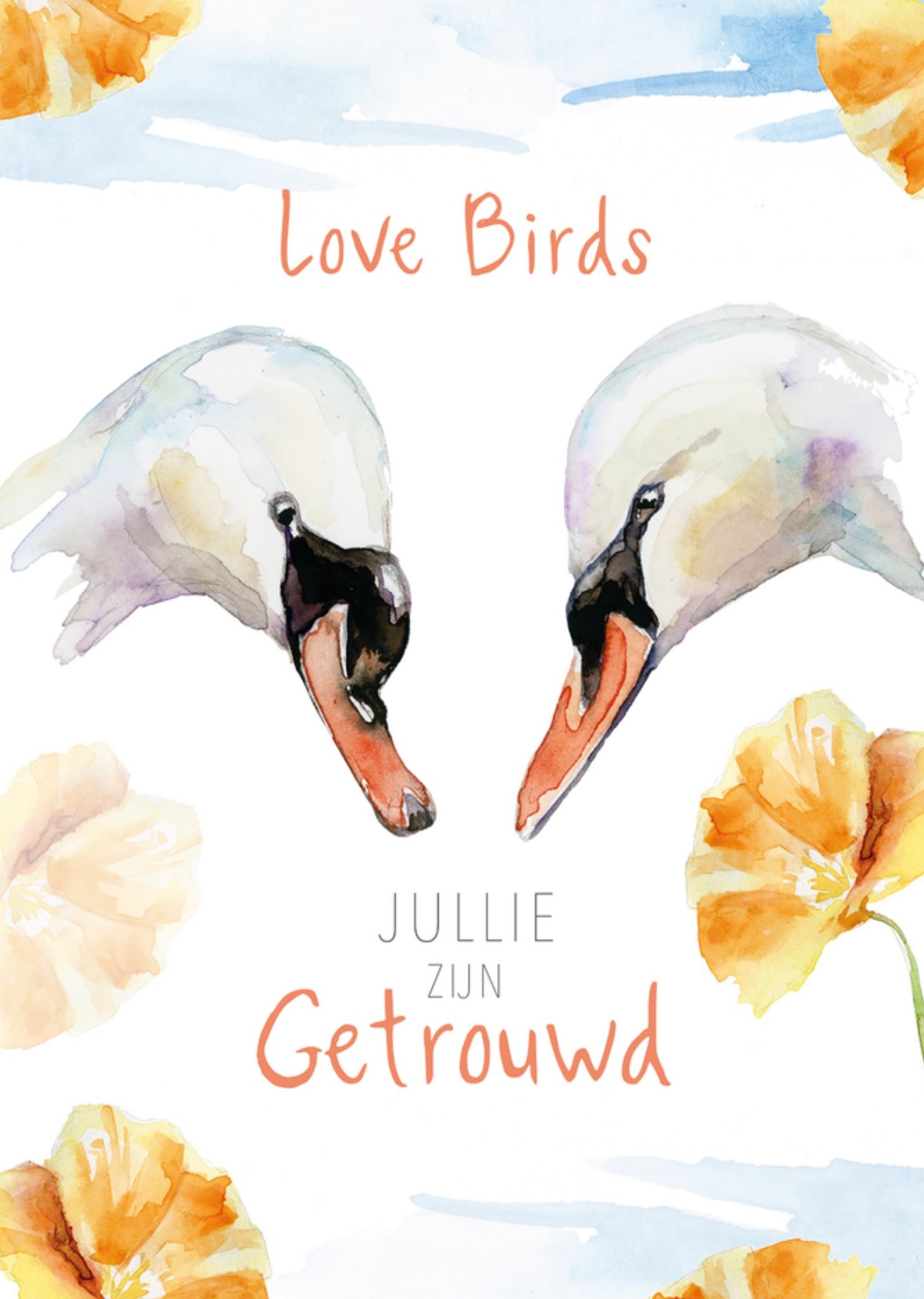 Michelle Dujardin Huwelijkskaart Love birds zwanen Jullie zijn getrouwd Giant Card