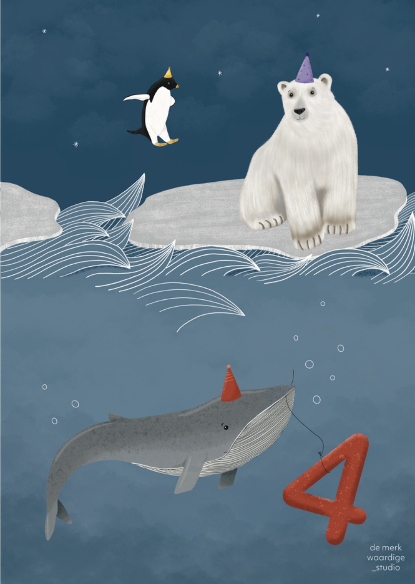 De Merkwaardige Studio Verjaardagskaart Met leeftijd 4 Arctische dieren Giant Card