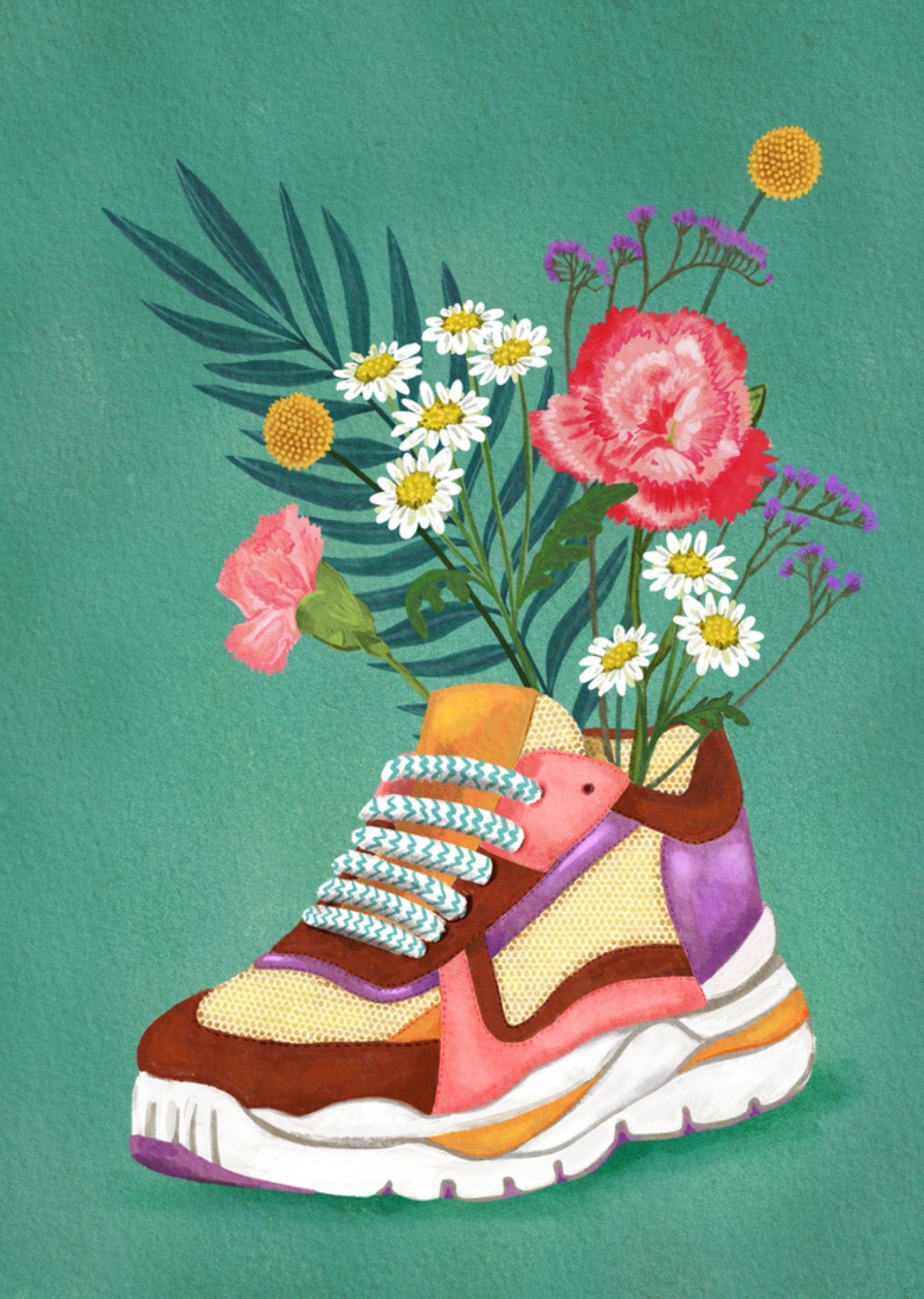Petit Konijn Zomaarkaart sneaker bloemen Postcard